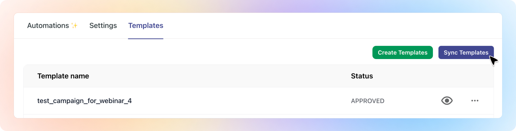 Templates created on Meta's platform will be available in the Templates section of WhatsApp Channel Connection.