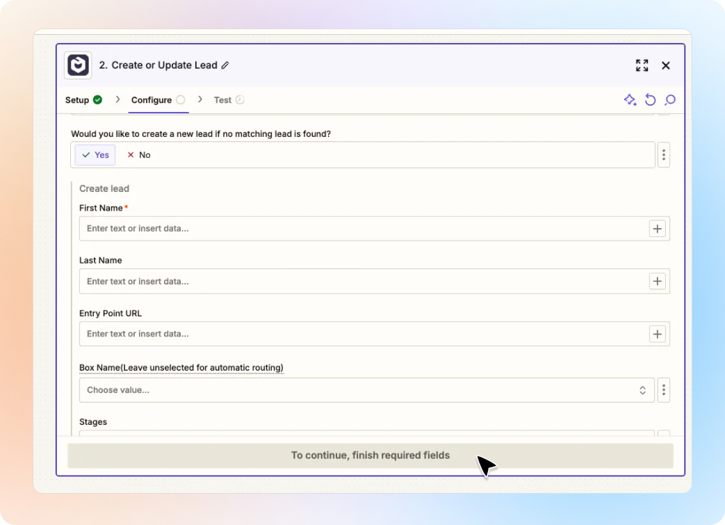 You can use Zapier to automatically update an existing lead in Beami or create a new one if the lead doesn’t already exist. This keeps your conversations clean, avoids duplicates, and ensures your leads stay up to date with the latest information.