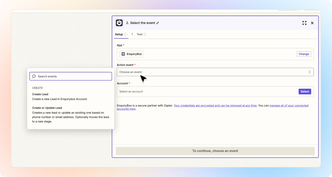 Step 2: Set the Action (Create or Update Lead in Beami)For the Action, search for Beami.