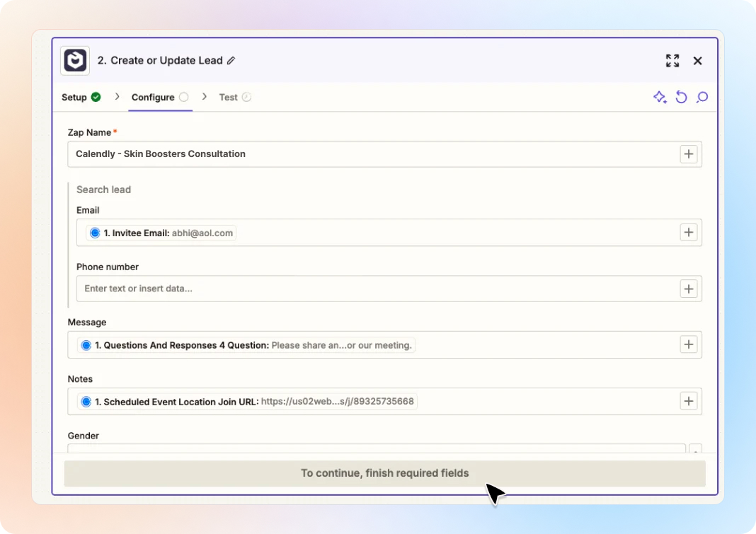 Choose a name like “Calendly – Skin Boosters Consultation”. This name will appear in the lead’s timeline in Beami so you can see where the update came from.