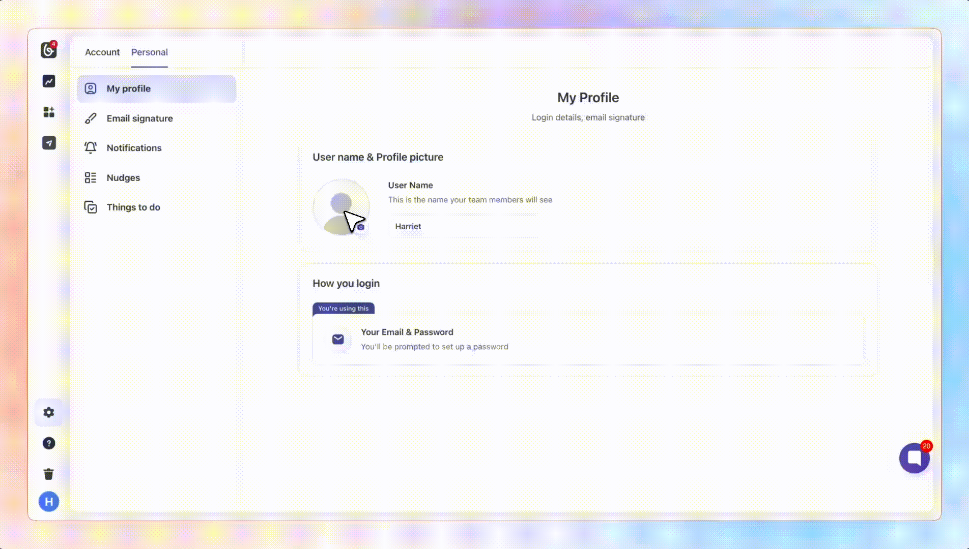 Navigate to the “Personal” tab: Here, you'll find options to update your User Name, Profile Picture, and login credentials.