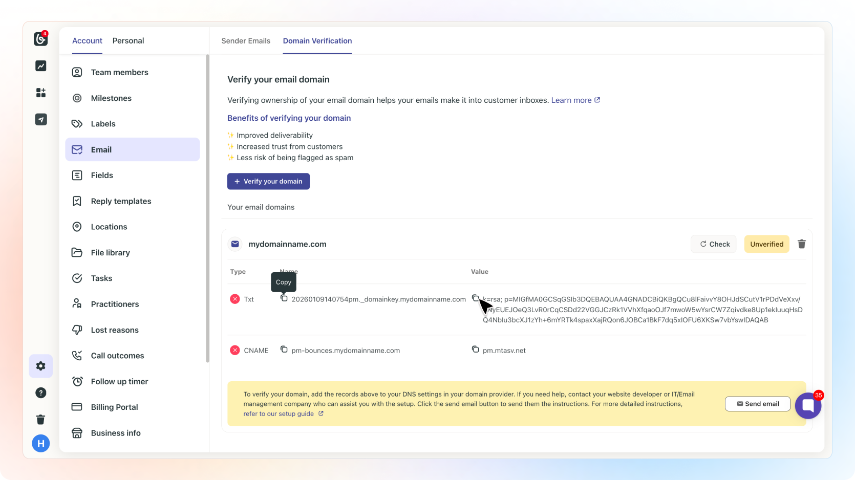 Once verified, your emails will be authenticated and trusted by inboxes, improving deliverability and keeping communication professional.