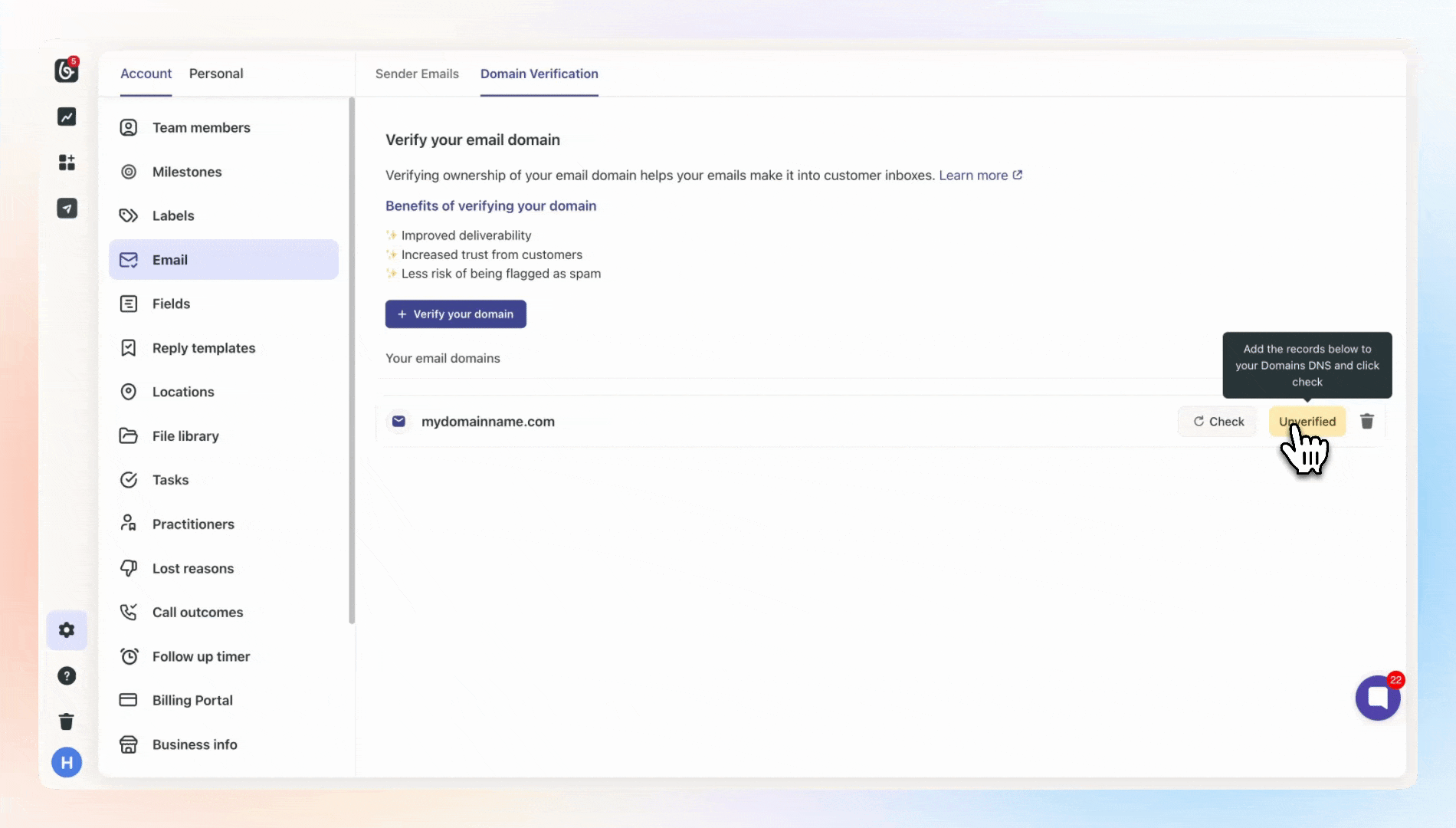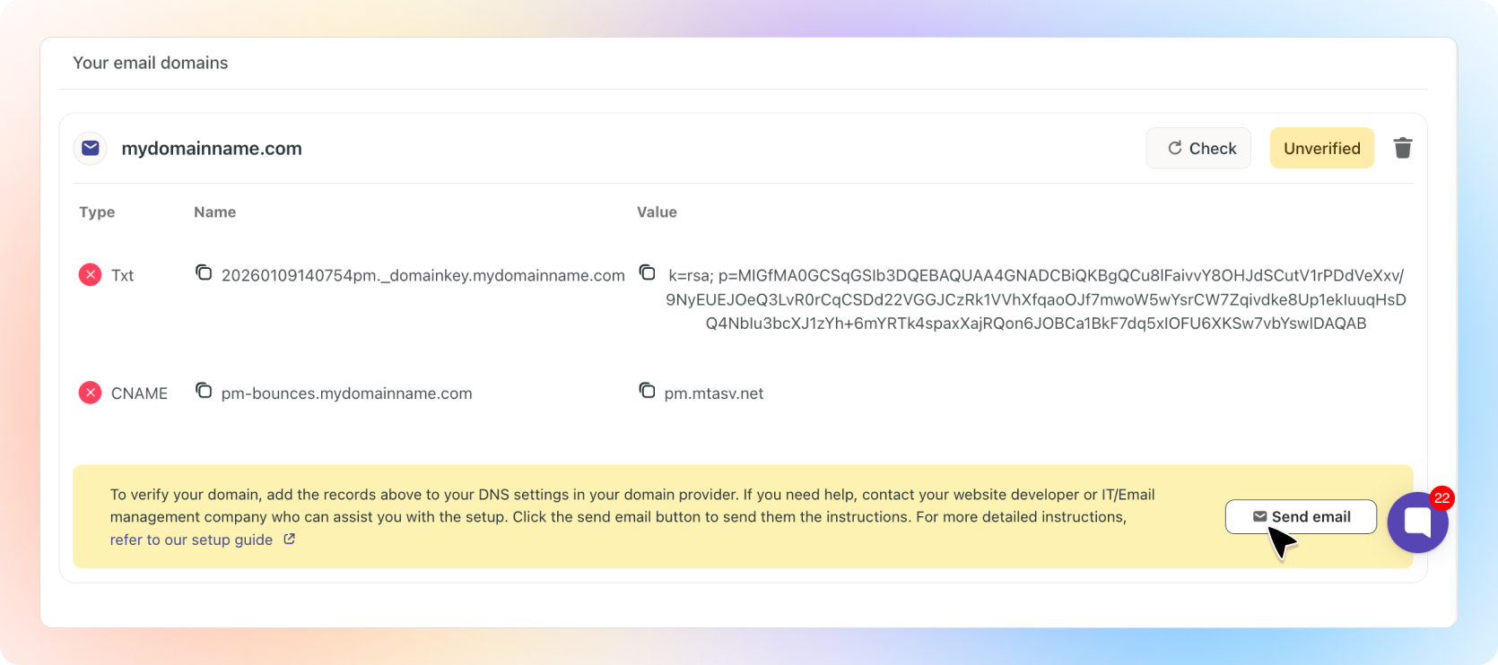 Once verified, your emails will be authenticated and trusted by inboxes, improving deliverability and keeping communication professional.