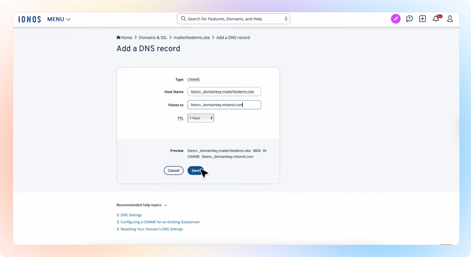 Verifying Your Domain in IONOS for Beami EmailWhen Beami sends emails on your behalf (like confirmations, reminders, or replies), verifying your domain proves to email providers (like Gmail or Outlook) that Beami has permission to do so. This improves email deliverability, helps reduce the chances of your emails going to spam, and keeps your communication professional and secure.