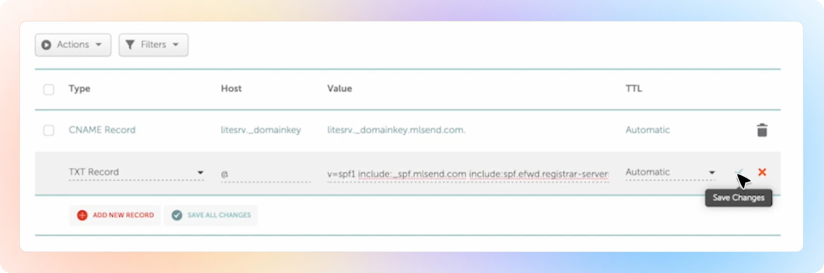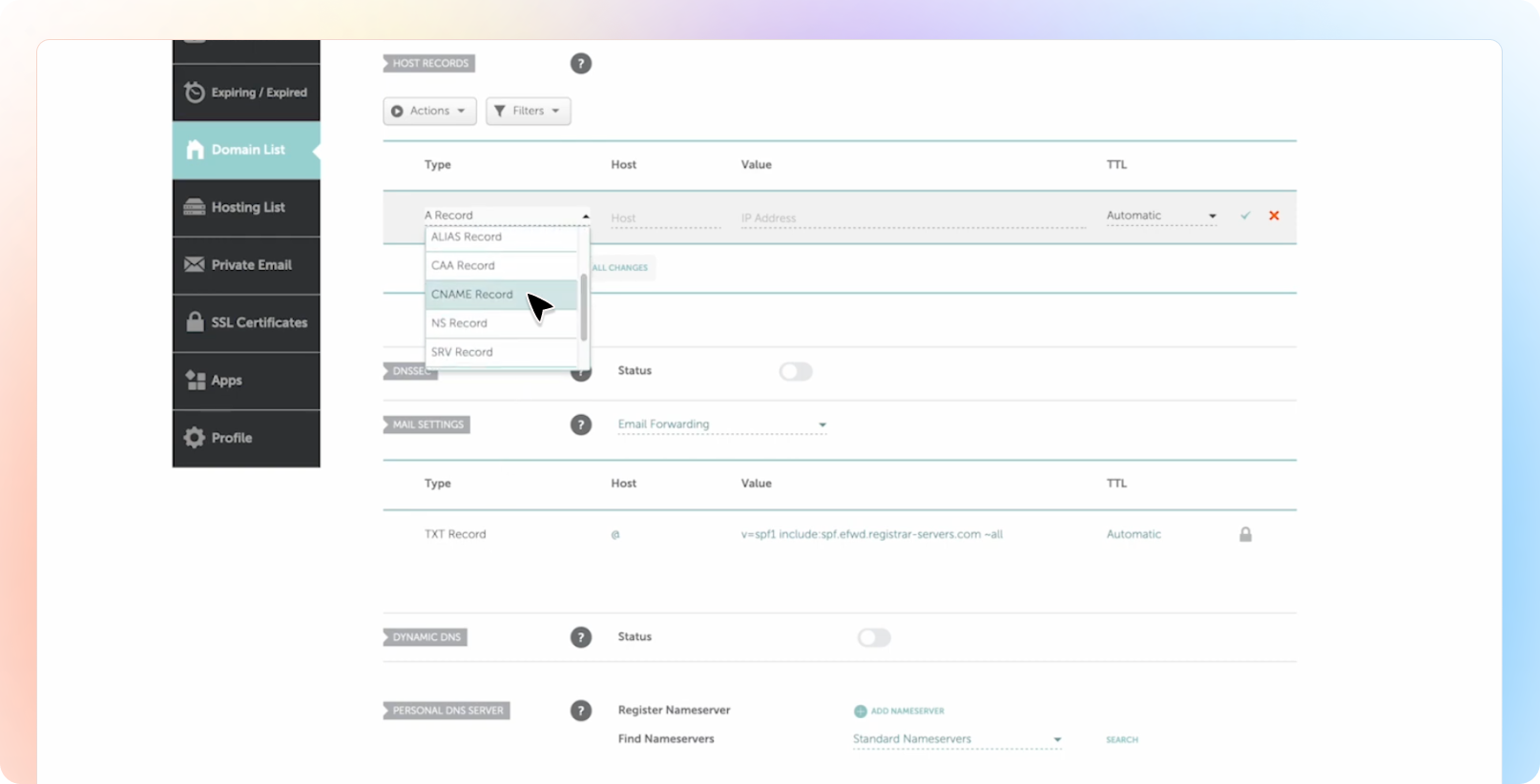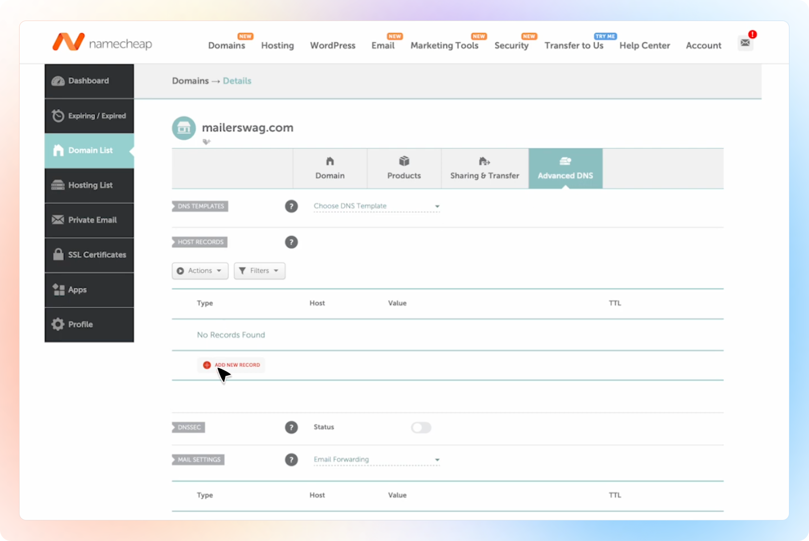 Under the Host Records section, click “Add New Record”.