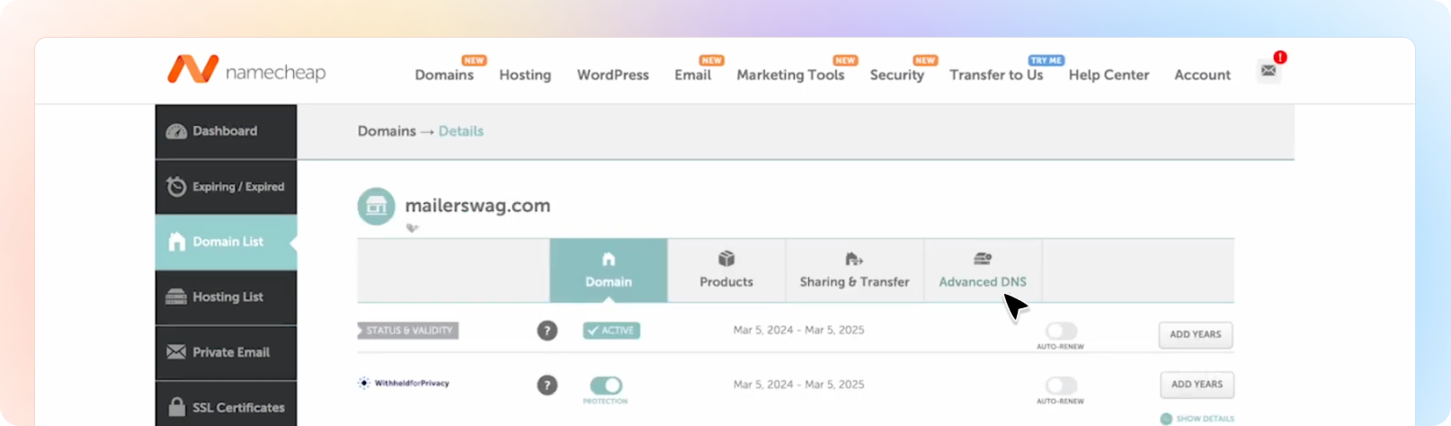 If you use Namecheap to manage your website (like yourclinicname.com), here’s a quick guide to verifying your domain so Beami can send emails on your behalf securely and reliably.