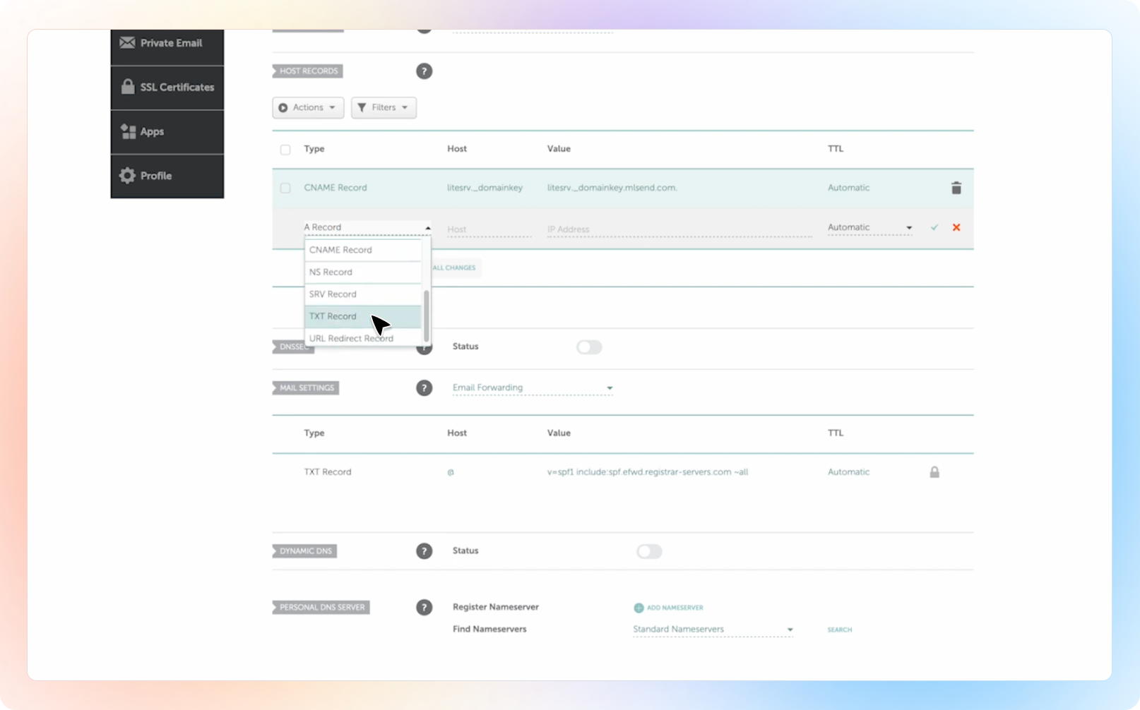 Fill in TXT Record details