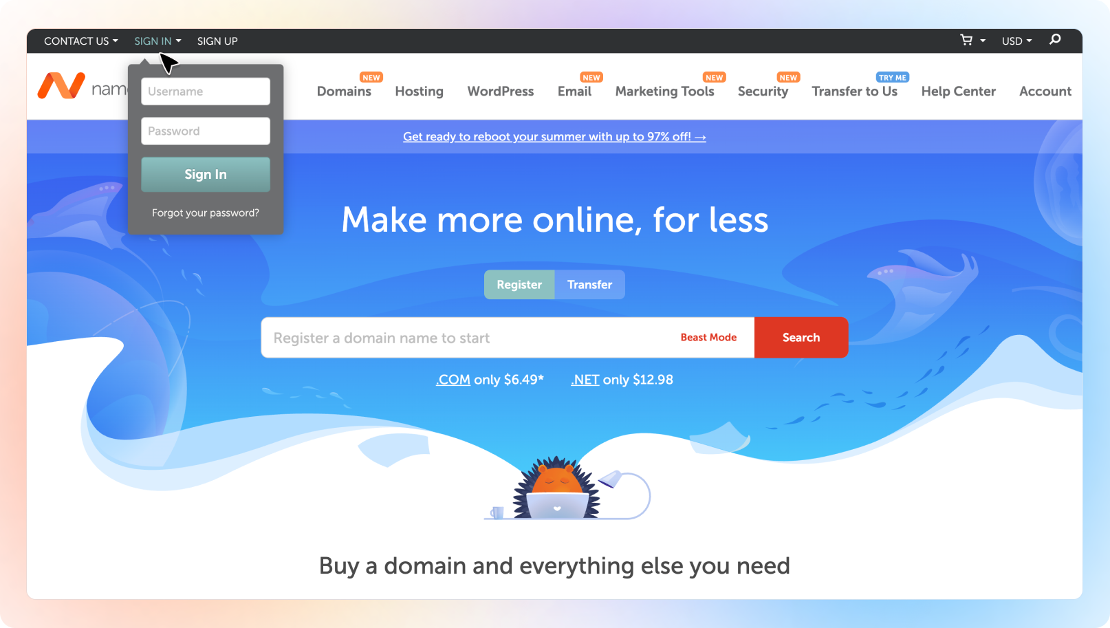 Go to namecheap.com and click Sign In, or click Account and then Dashboard to sign-in.
