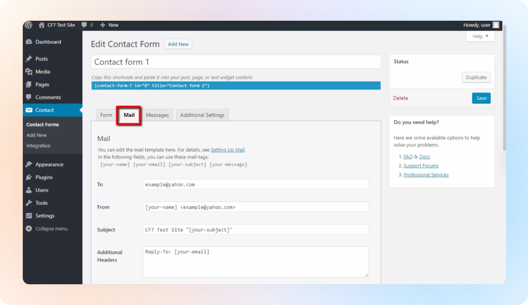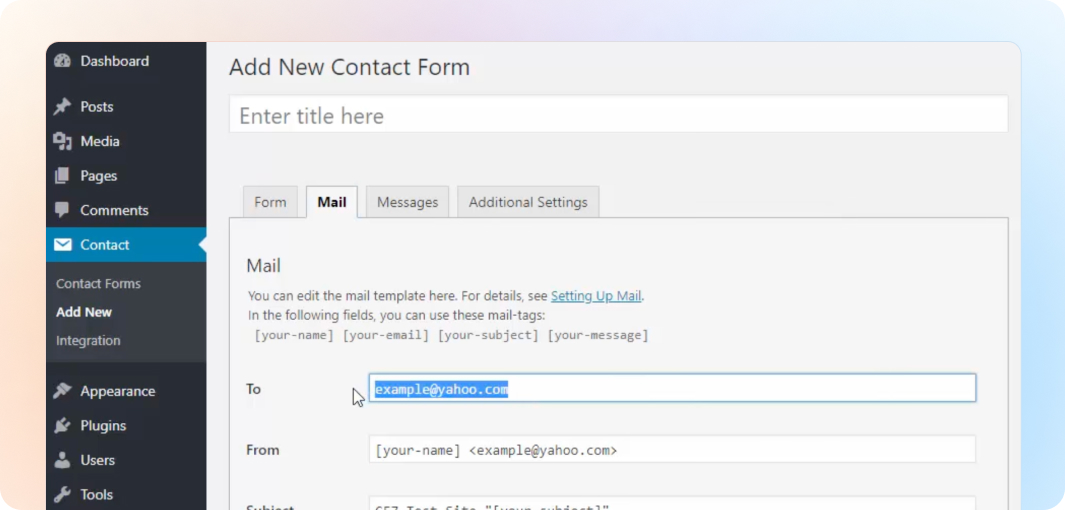 This email forwarding address is how Contact Form 7 knows where to send form submissions to.