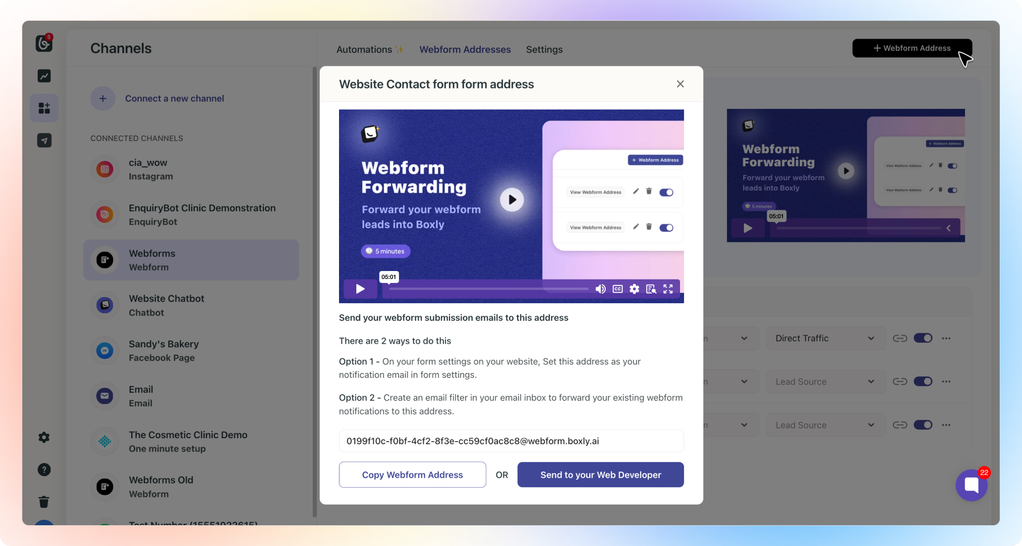 What is Webform Forwarding?Webform forwarding lets Beami receive form submissions (like enquiries or bookings) via a special forwarding email address, unique to your account, so when someone fills out a form on your site, their details are automatically passed to Beami.