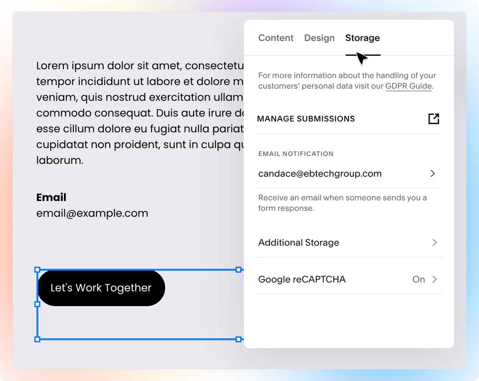 This email forwarding address is how Squarespace forms knows where to send form submissions to.