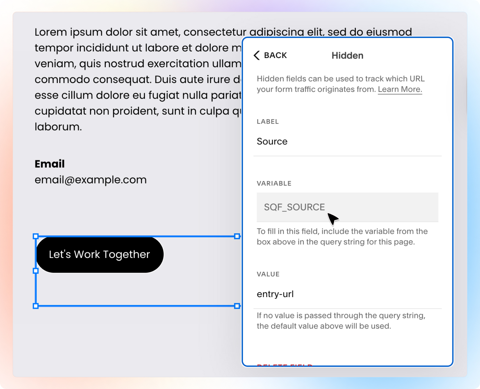 Customise the hidden field to say “Source” in the Label field - this will auto fill the Variable field to say SQF_SOURCE