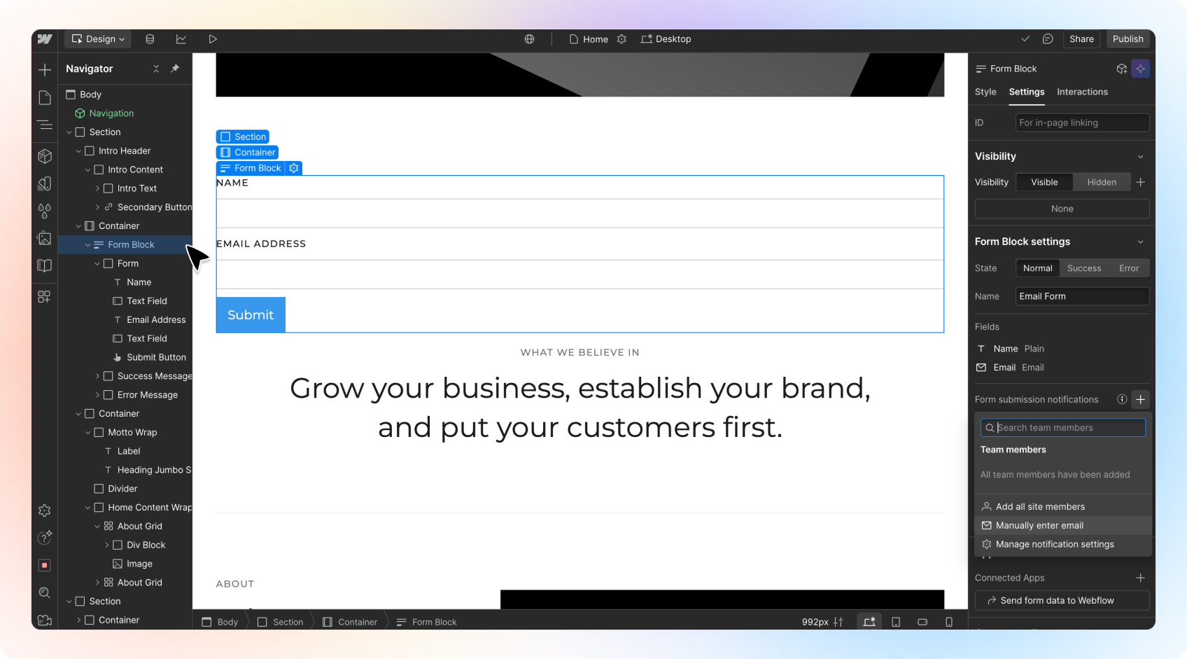 A live Webflow Form embedded on your website