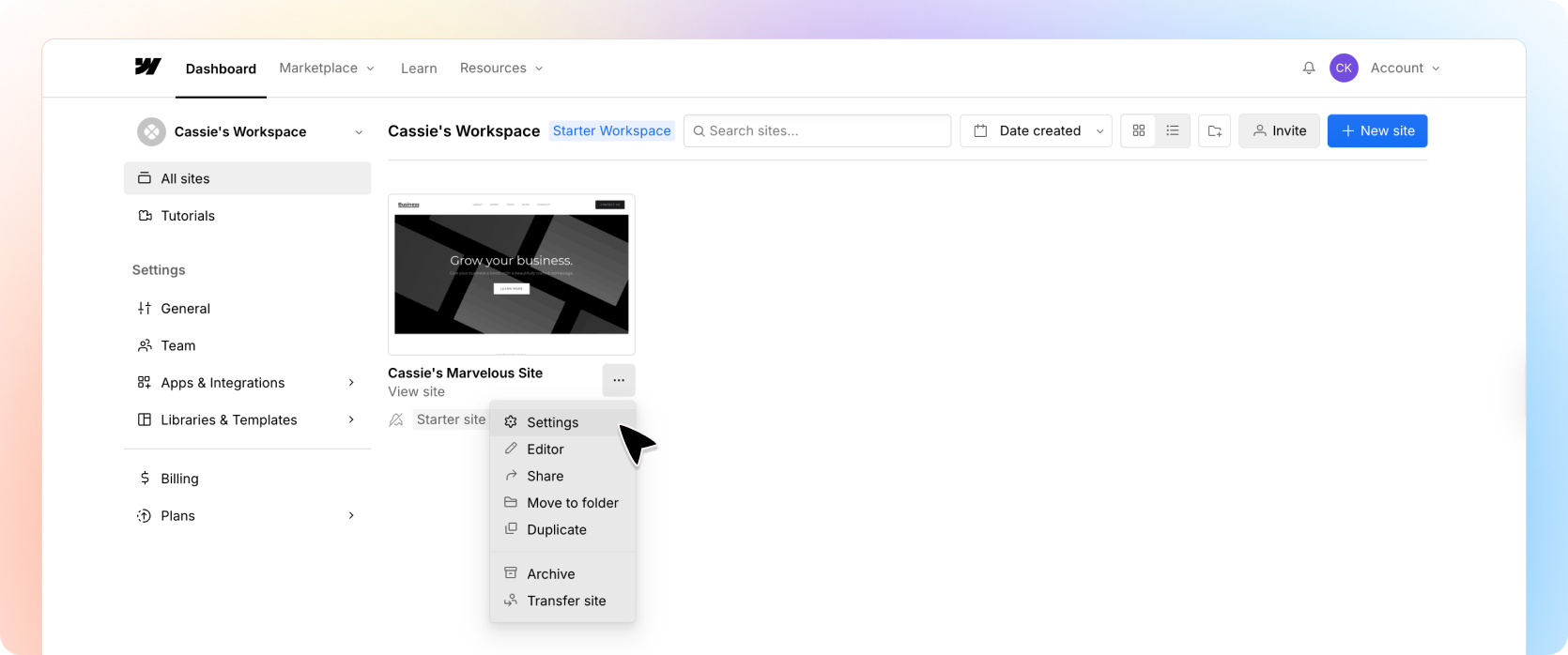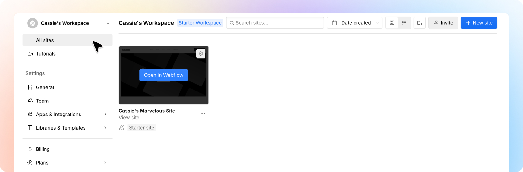 Login to webflow and go to your Dashboard.