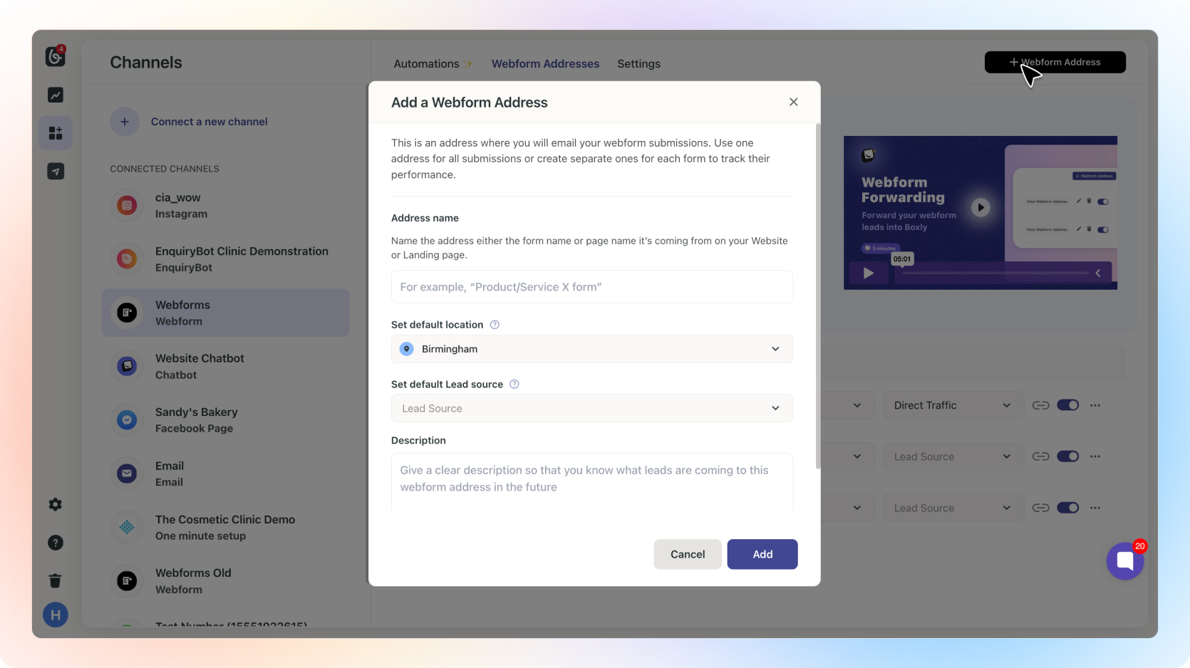 To create a new Forwarding Address: Go to your Channels > Webform channel