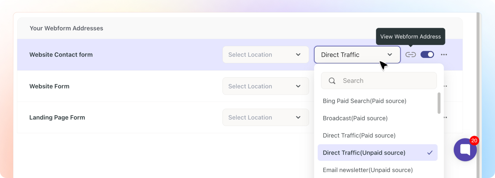 These sources help you track where your leads are coming from.