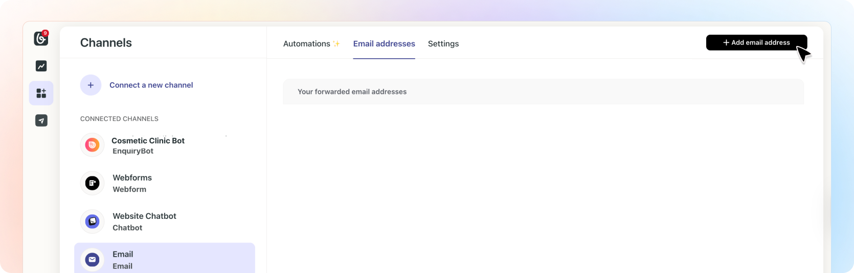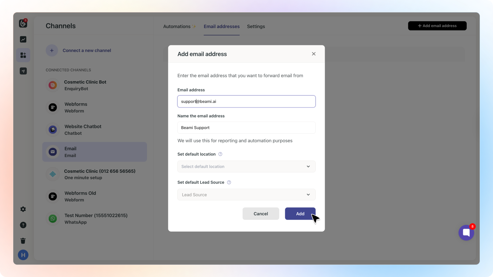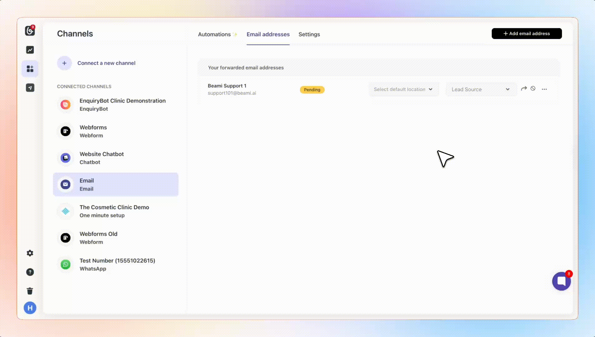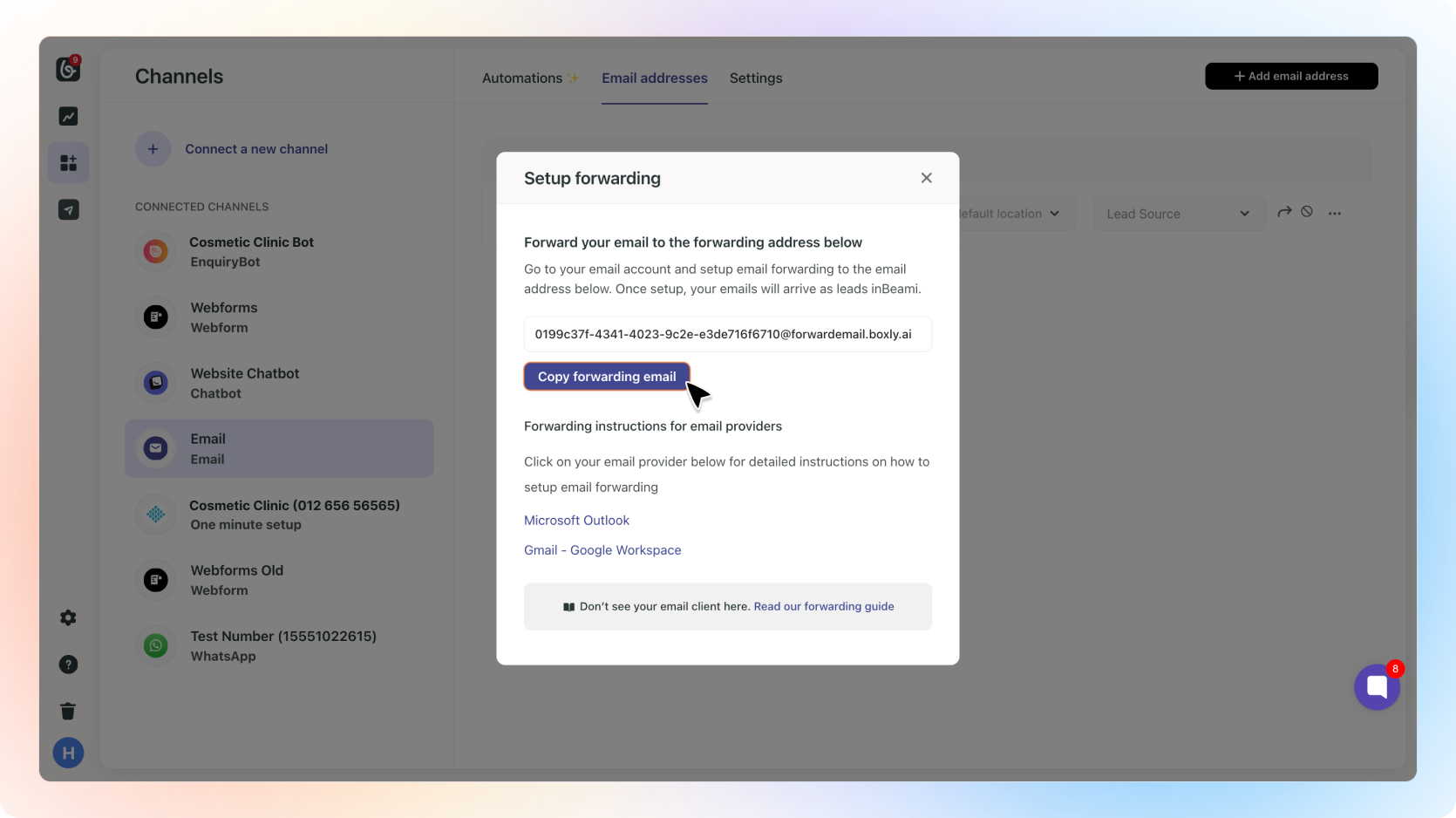 Setup Email forwarding in BeamiIf you don't have this channel connected: