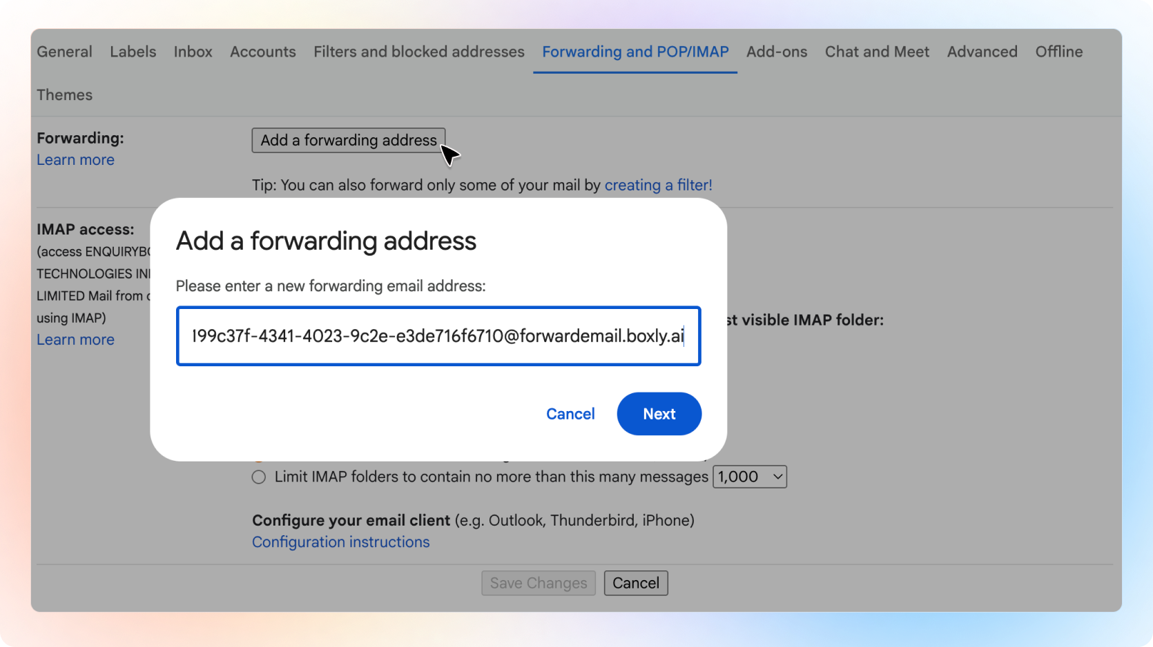 Add the email address you'd like to forward emails from.