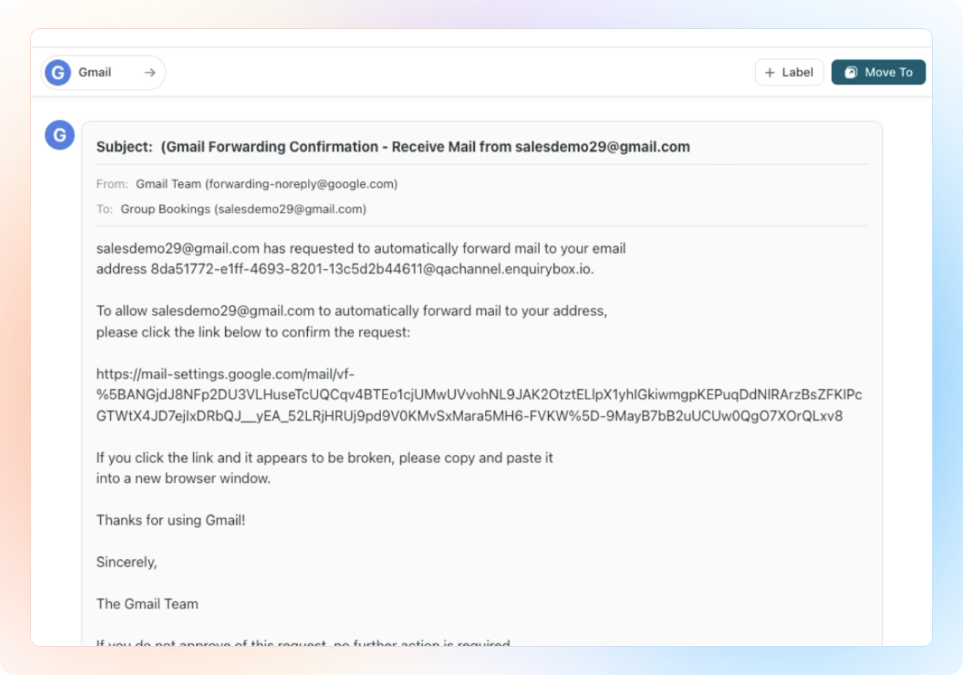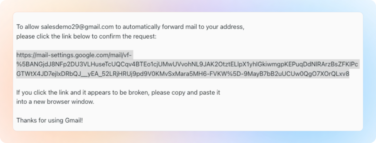 You will receive an email from Gmail to verify the forwarding address in Beami.
