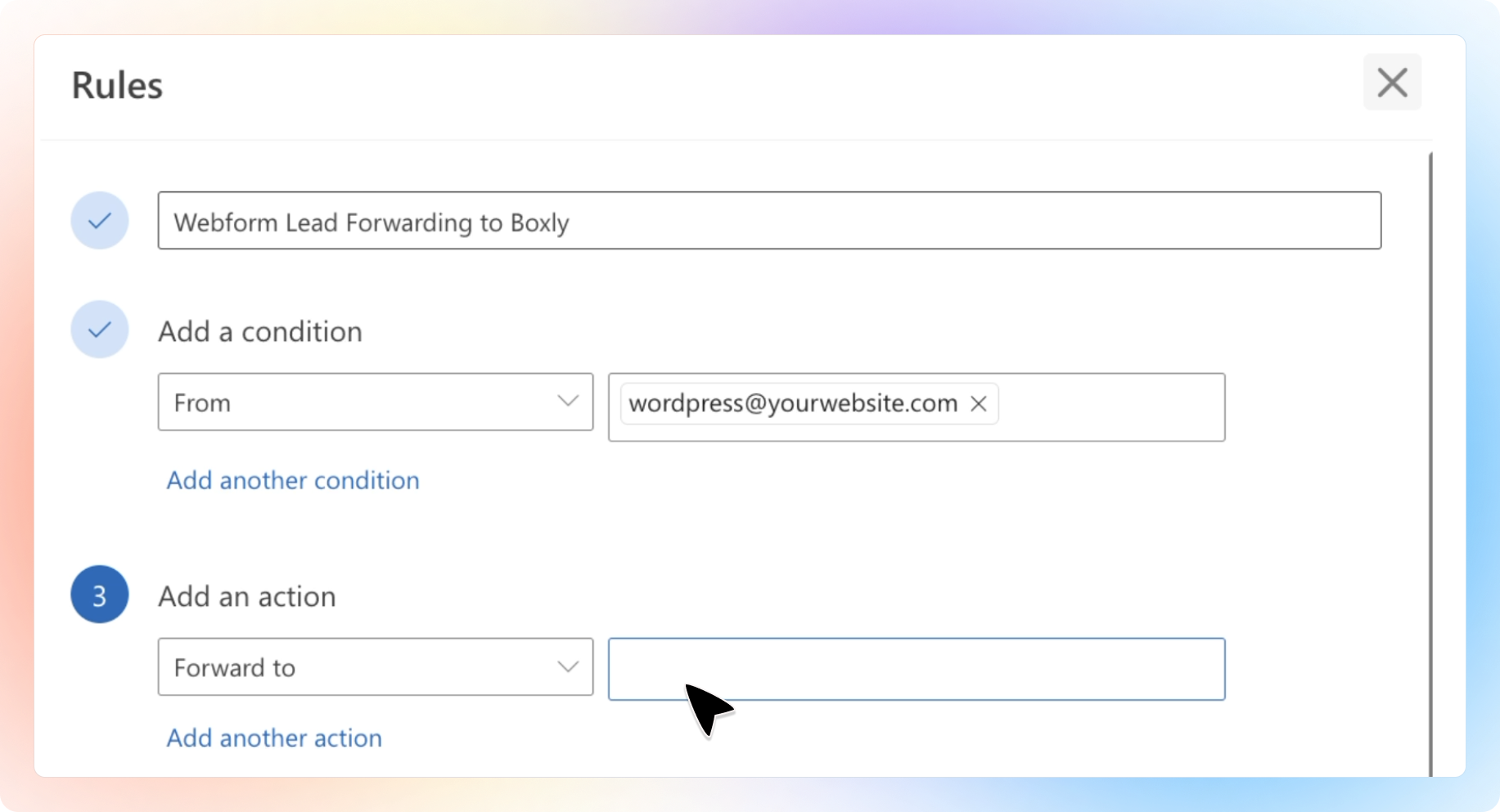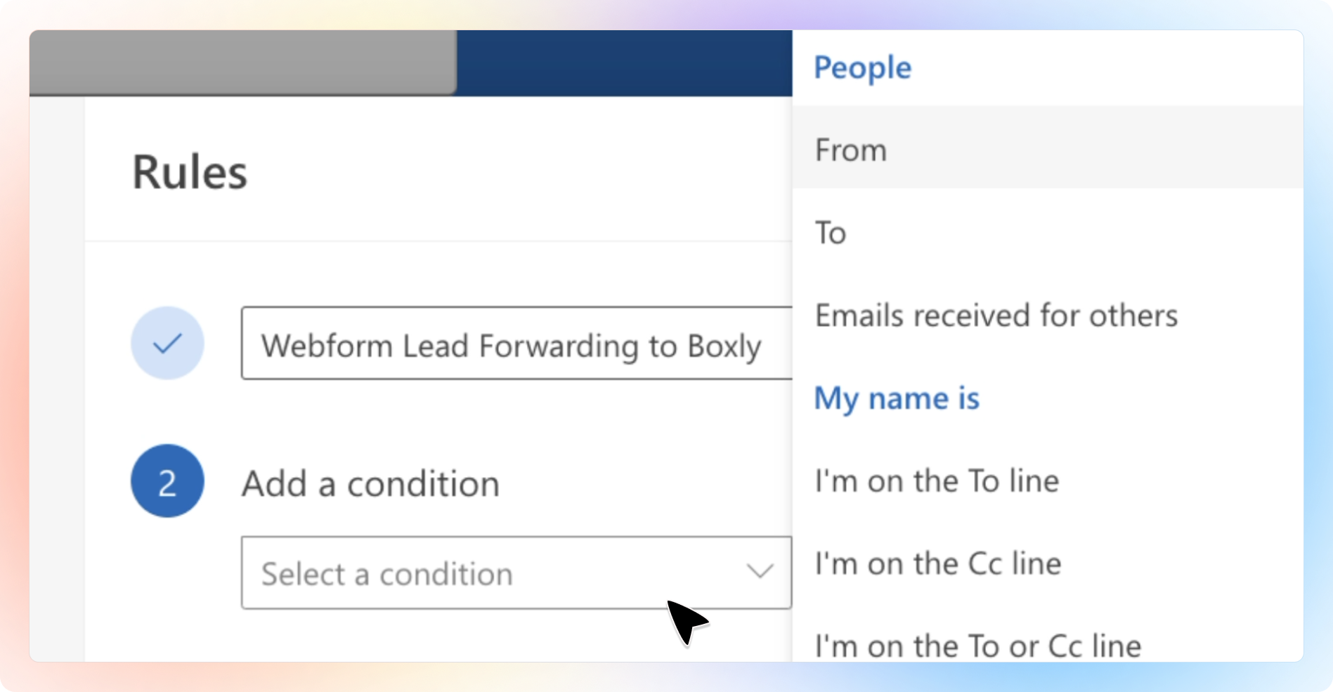 Name your rule "Webform Lead Forwarding to Boxly"