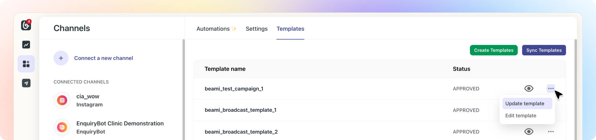 Once it’s been approved by Meta, you must go to Beami and update your WhatsApp templates