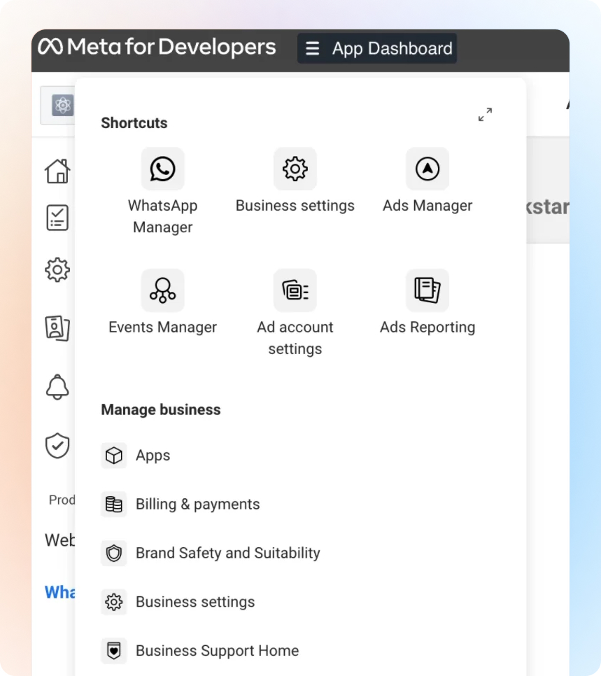 Select the App that you created for WhatsApp