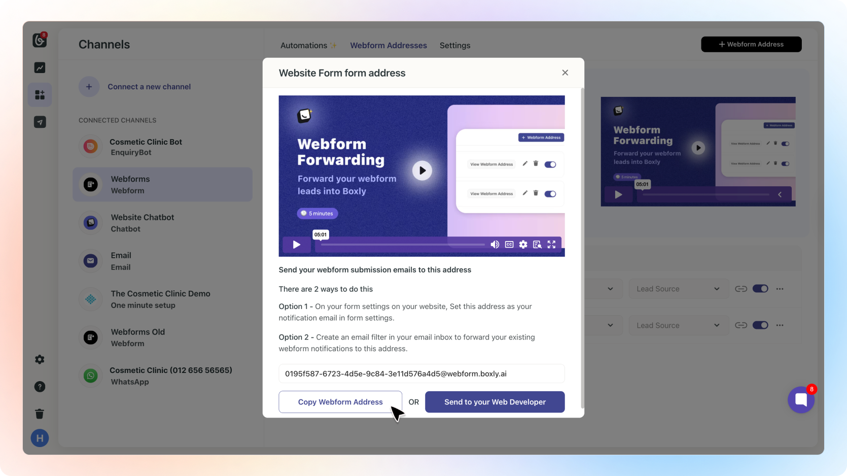 And that's it! Once your webforms come into your email they will then be immediately redirected into Boxly.
