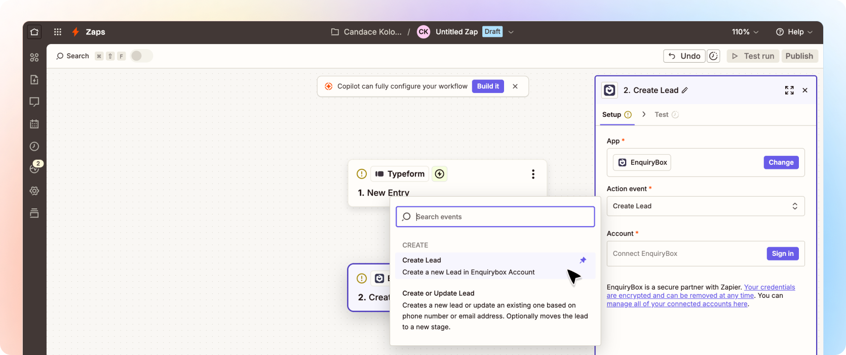 Once mapped - Click test step and you should see the lead pop into Beami. If you happy with the connection, publish you Zap!