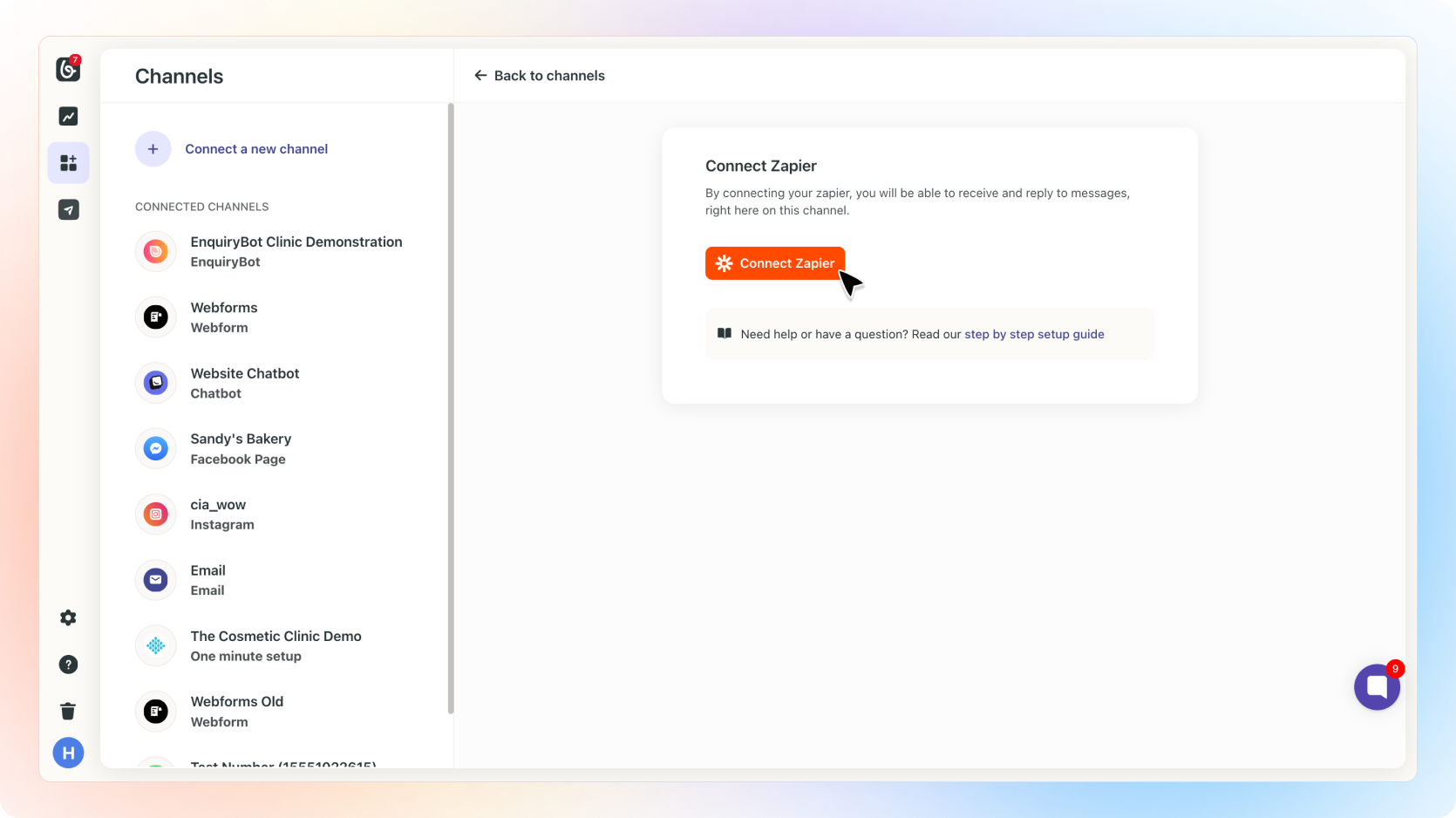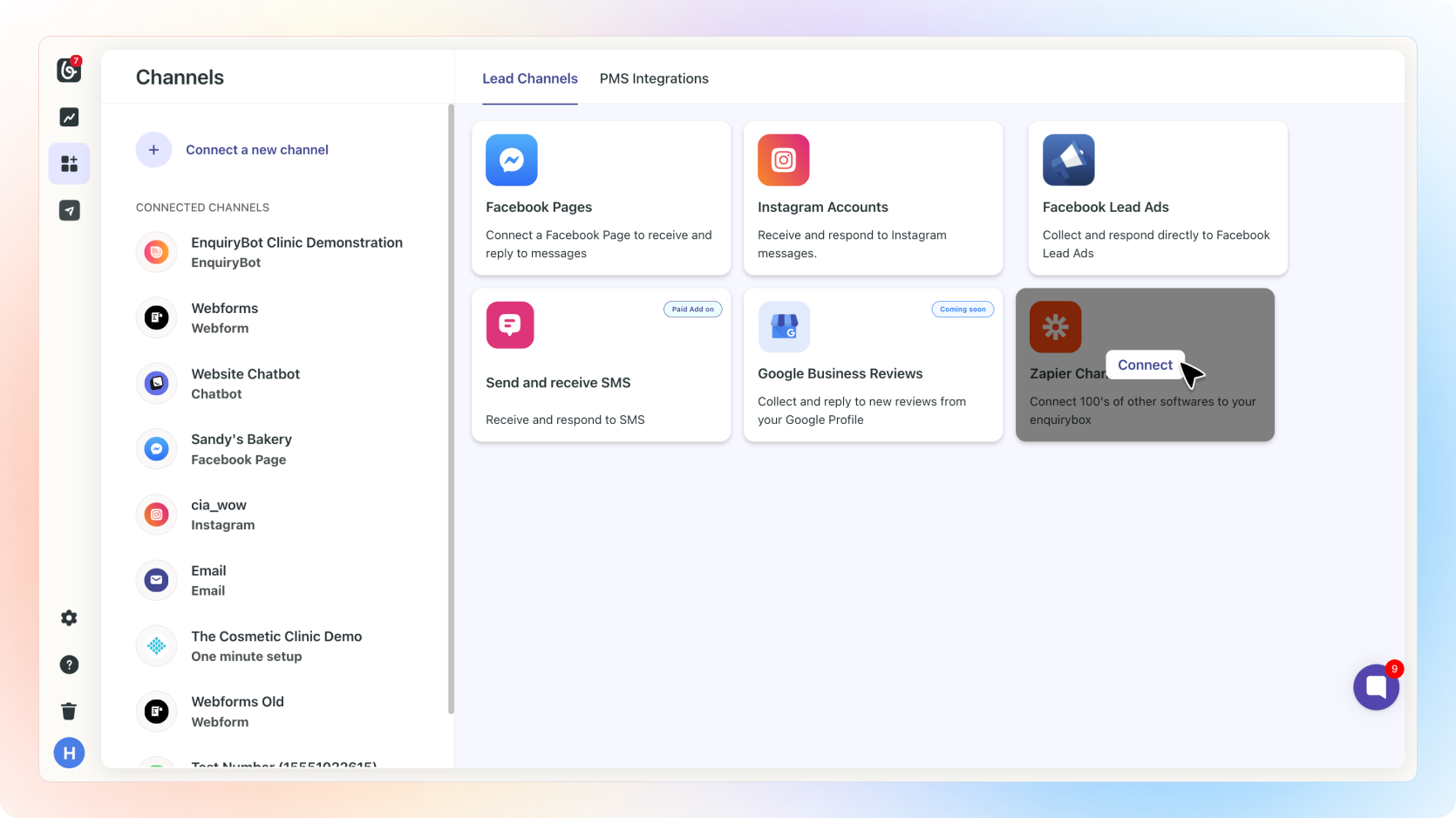 Then click connect on the Zapier Channel