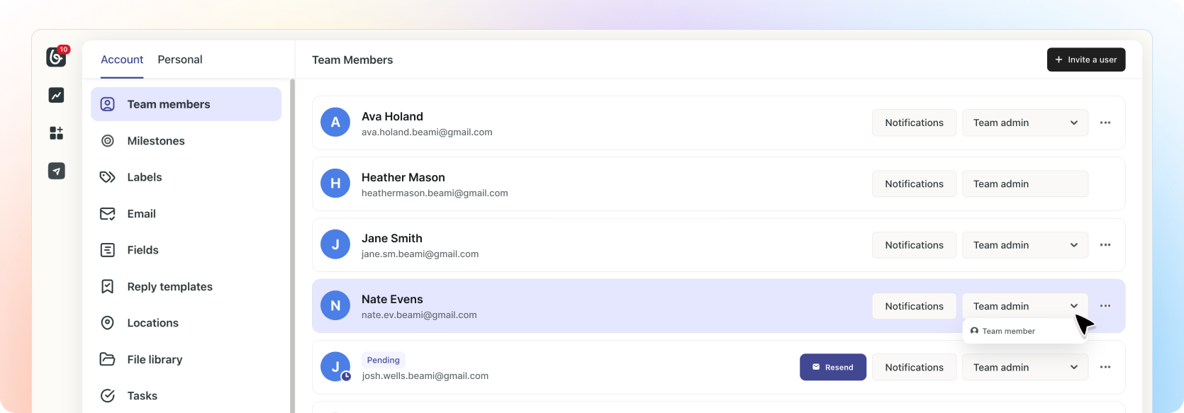 At Beami we little to keep it simple. That's why we have just 2 user levels. Account Admin and Team Member. See more on those below.