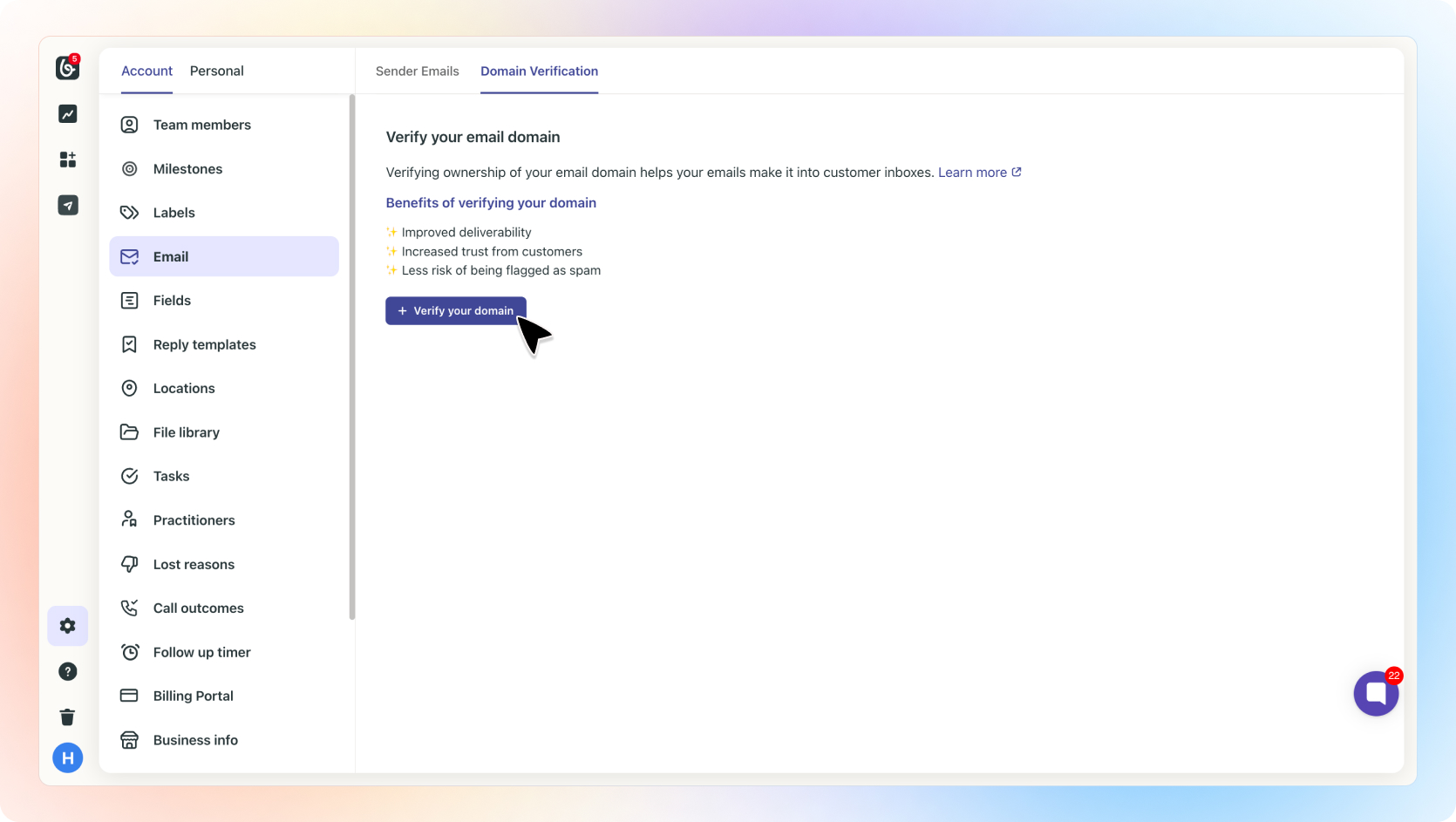 A verified domain tells everyone you’re serious about sending quality emails. It's a boost to your email rep and keeps your messages in the clear.