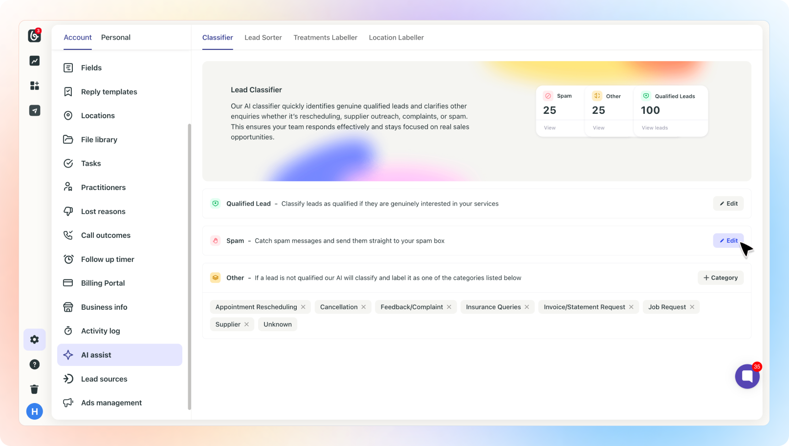 An AI prompt will be worked into the Spam Box that automatically routes spam leads into the Spam Box - this Box doesn't have notifications enabled.