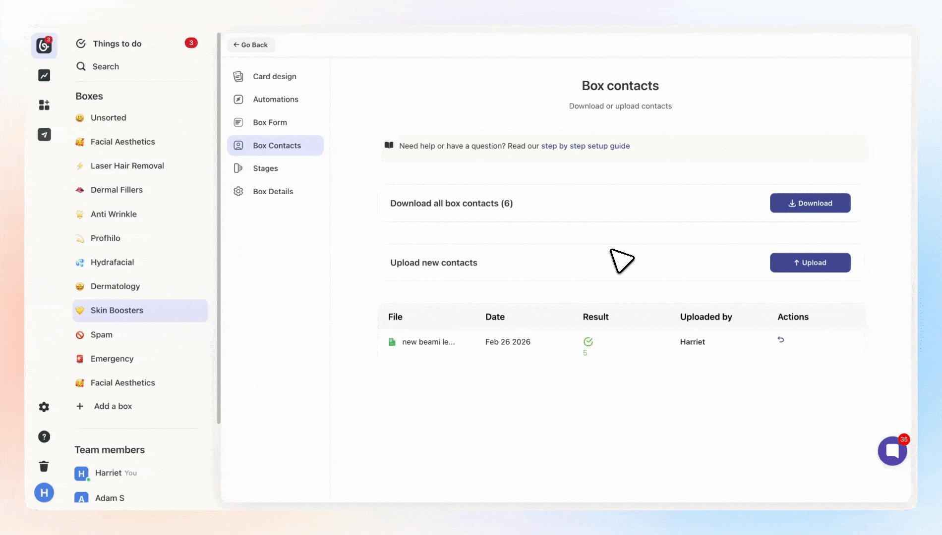 Then click on "Box contacts".